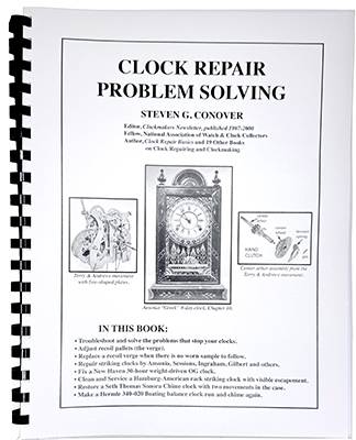 Clock repair problem solving book by Steven Conover soft cover with 128 pages.