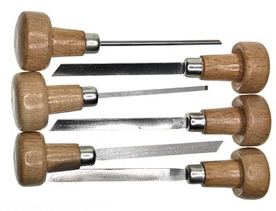 Set of 6 flat gravers with wood handles. Made in India.